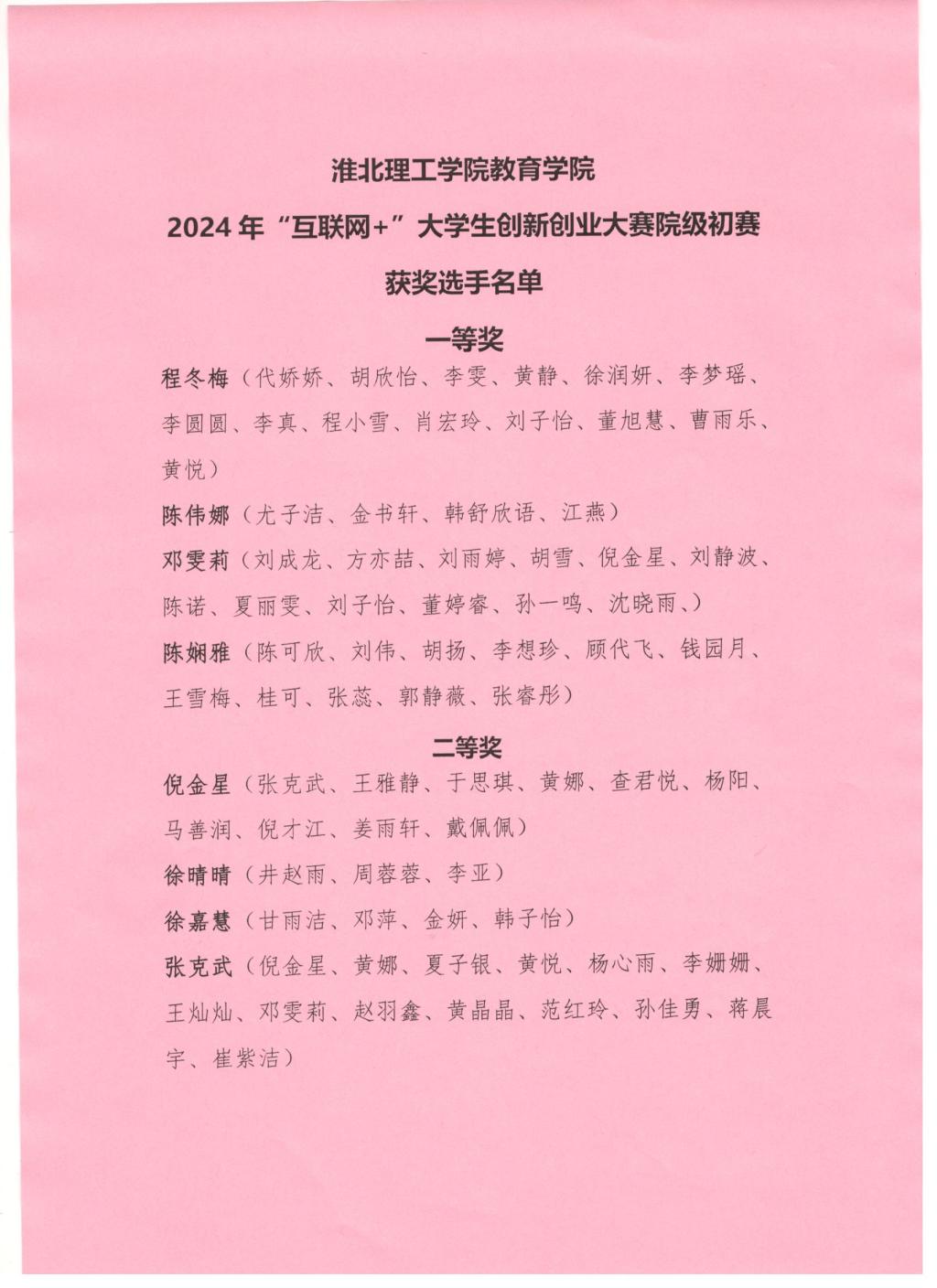 taptap点点体育2024年“互联网+”大学生创新创业大赛院级初赛获奖选手名单