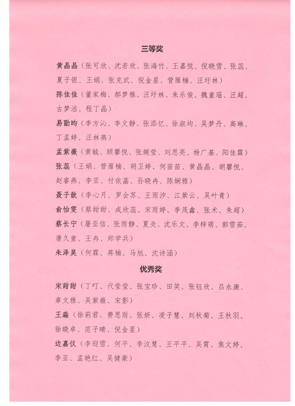 奖项,具体获奖名单公示如下: