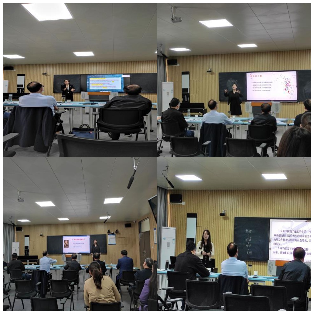 4 月 20 日由王院长带领,为各位参赛选手在赛前进行预热和演练,各教研室主任集体听课,再次对所有参赛选手的教学进行了探讨并提出改进建议。参赛教师汇集大家提出的意见和建议后,再一次对课件、教学设计进行修改,为参加学校的决赛做最后准备。