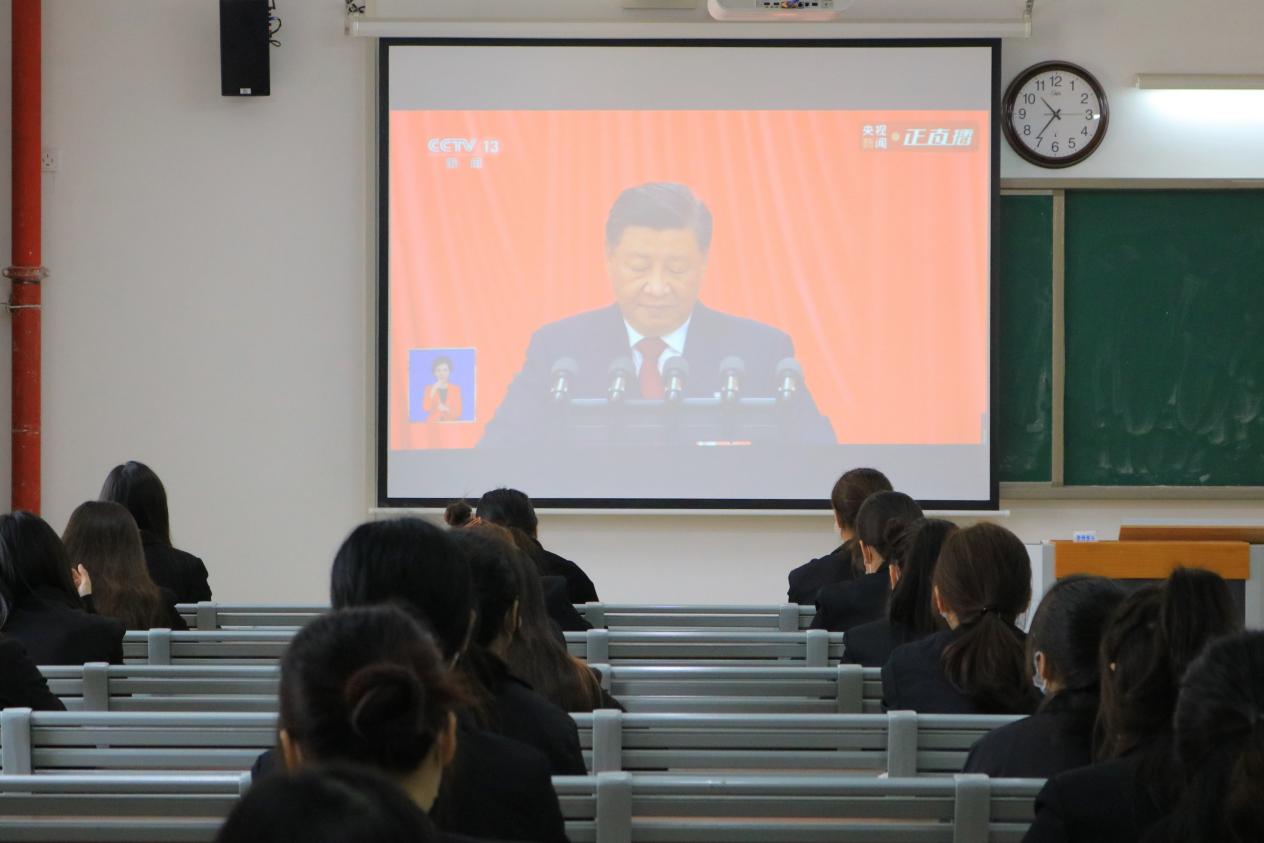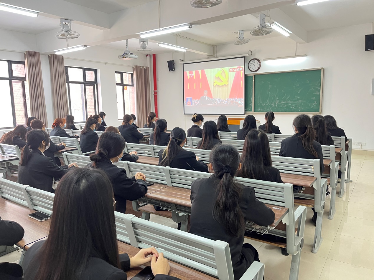 2022年10月16日上午,taptap点点体育组织学生党员、学生代表分别在第2教学楼412教室、413教室、414教室、415教室集中观看党的二十大开幕会盛况。