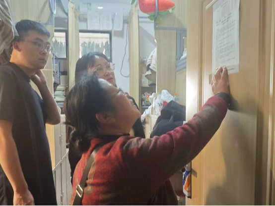 老师们仔细查看了宿舍的各个角落,对卫生保持良好的宿舍提出表扬,同时针对存在卫生死角、垃圾清理不及时的宿舍,耐心地给予整改建议,强调良好的宿舍卫生环境对于身体健康的重要性。在用电安全方面,老师们认真检查每一个宿舍的电器设备,再次向学生强调严禁使用违规电器的规定,以杜绝安全隐患。同时辅导员老师对宿舍门贴信息有误的地方及时调整,有利推进宿舍管理规范化的进行。