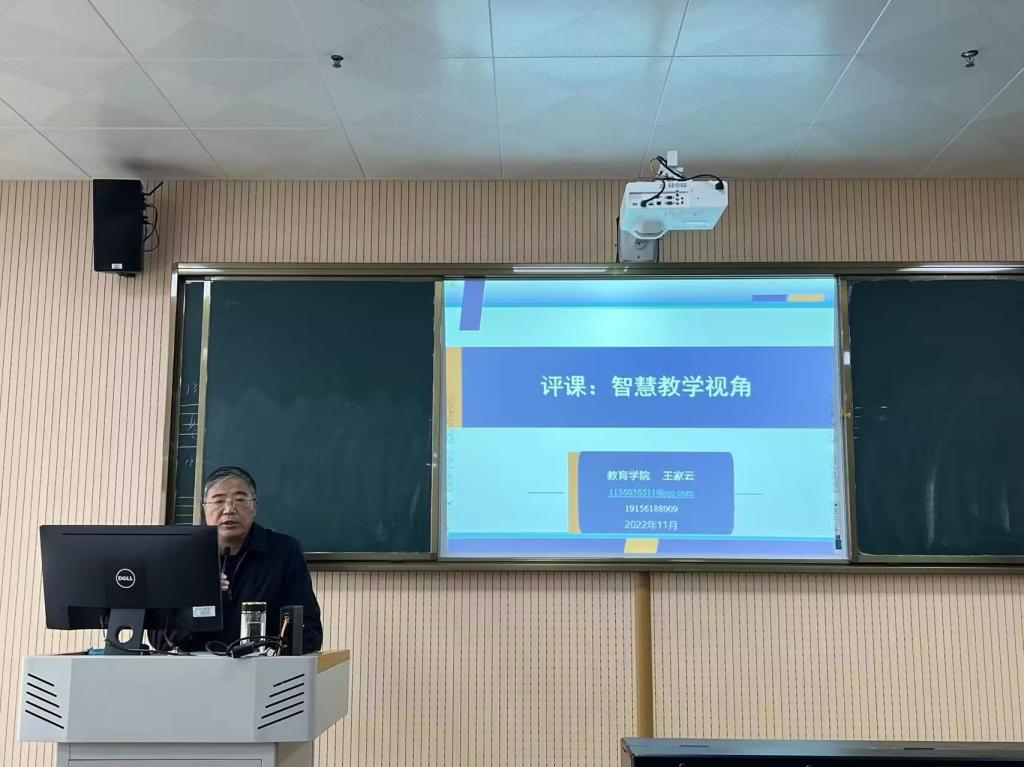 王院长从智慧教学的视角讲述评课,围绕评课概述、评课关心的问题、争创优等课的建议三个方面展开阐述,评课的概述从评课背景、评课定义、评课分类使教师对评课有更深刻的理解;评课关心的问题围绕智慧教学材料整理中的问题、智慧教学材料的评价标准两大方面让教师了解智慧教学建设中需要注意的问题;最后,王院长围绕如何设计优等课的问题给广大教师提出可行性建议。