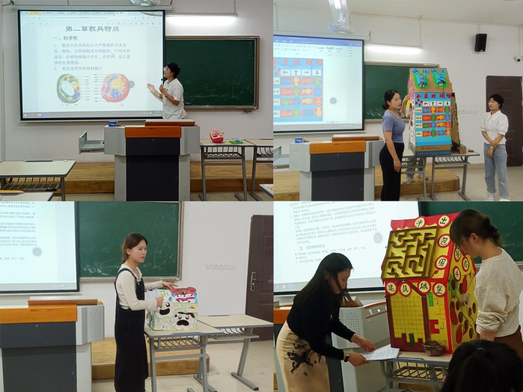教具组赛事由教具设计使用手册和教具演示两个考核项目组成。教具设计使用手册要求选手根据自选主题及内容,按照课程标准进行教具设计,并从科学性、创新性、有效性和实用性介绍教具设计理念和操作使用说明,教具演示要求选手从科学性、创新性、有效性和实用性等方面介绍教具并进行操作演示。