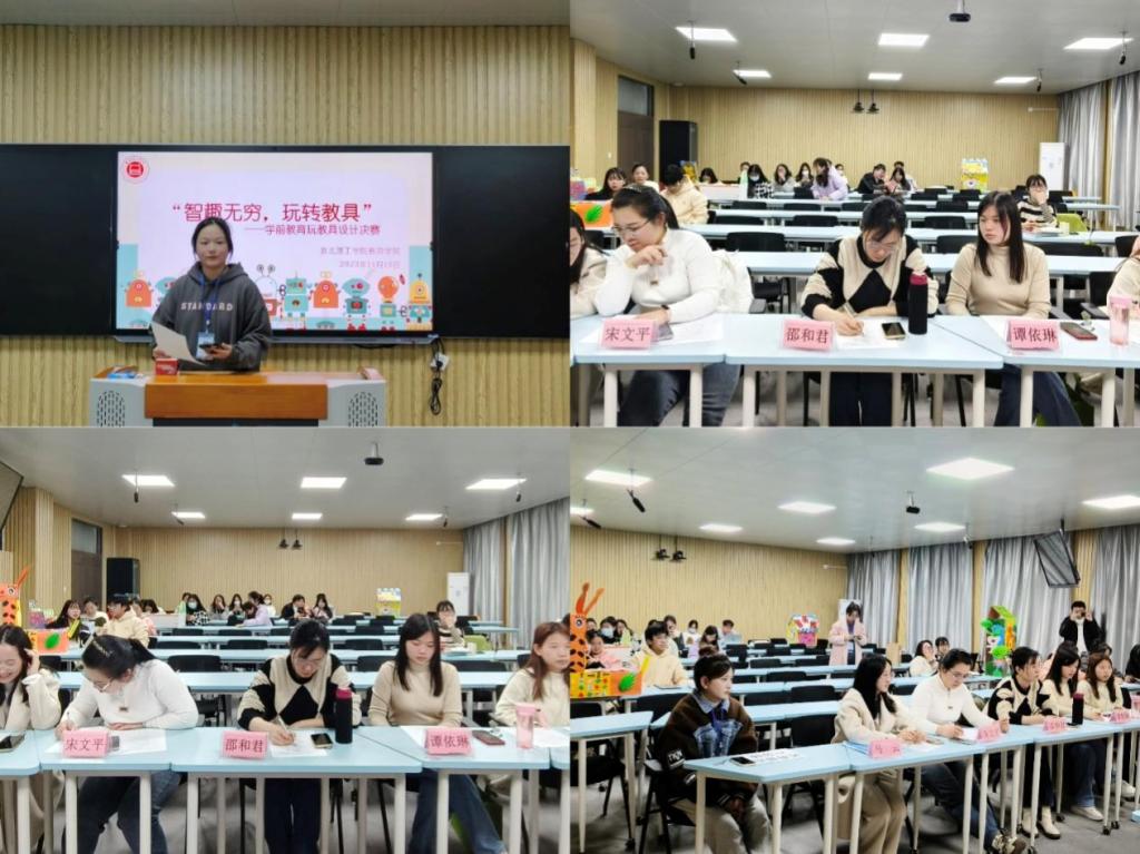 为进一步提高学前教育专业学生自制玩教具的技能,增强学生的动手实践能力和教学探索能力,为将来走上工作岗位打好基础。11月15日下午14:00,taptap点点体育学前教育专业在一教210教室开展了“智趣无穷,玩转教具”比赛。本次比赛由院学生会学术科创部负责人主持,邵和君、马云、宋文平、谭依琳和张亚玲老师担任评委。