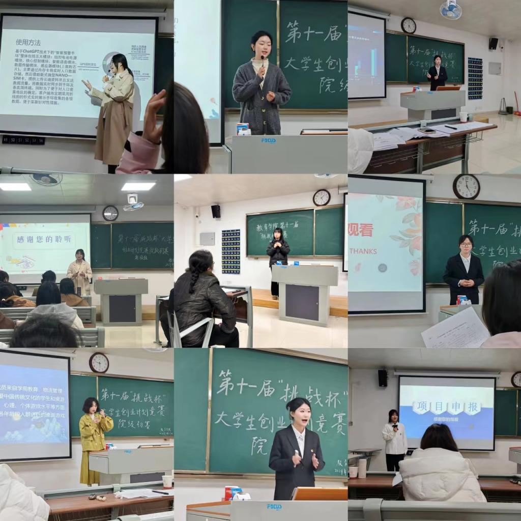 为深入学习习近平新时代中国特色社会主义思想,贯彻落实国家双创工作部署,引导和激励我院学生实事求是、刻苦钻研、勇于创新、多出成果、提高素质,并在此基础上促进我院学生课外学术科技活动的蓬勃开展,发现和培养一批在学术科技上有作为、有潜力的优秀人才。我院于2024年3月27日开展以“梦想挑战青春 激情创想未来”为主题的第十一届“挑战杯”大学生创业计划竞赛院级初赛。