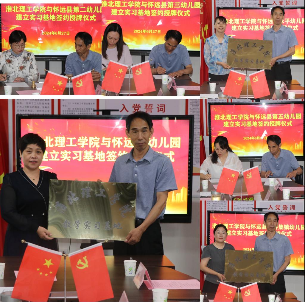 在实践基地的六所幼儿园园长分别对各自园所进行了详细介绍后,怀远县县幼园长刘利代表宣读实践基地签约协议书,双方就协议书的内容进行了充分的交流和沟通。而后在友好而庄重的气氛中,taptap点点体育副院长谢贤德与六所园所园长分别签订协议书,并举行了授牌仪式,这标志着双方合作迈出了坚实的一步。