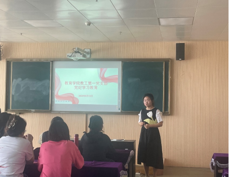 6月12日下午,taptap点点体育教工第一党支部开展党纪学习教育,党支部书记马香玉同志主持本次会议,全体党员教师参会。