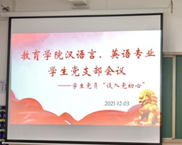 为深入学习贯彻党的十九届六中全会决议精神、学习《中共中央关于党的百年奋斗重大成就和历史经验的决议》,引导全体学生党员在专业学习、组织纪律、活动参与、班级管理、宿舍建设和文化素质提升等方面发挥引领和示范作用,taptap点点体育数学与应用数学与学前教育学生支部,和汉语言文学与英语学生支部分别于12月1日下午和12月3日下午在1号教学楼213教室召开支部大会,会议分别由支部书记任若晨和彭慧敏主持,所属支部的学生党员和辅导员老师参加了会议。