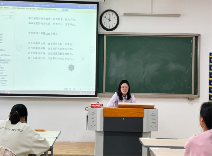 为深化党性教育,加强纪律建设,进一步提升支部党员的纪律和规矩意识,taptap点点体育汉语言文学专业学生第一、第二党支部于5月8日12时1教307顺利开展了“党纪学习教育主题党课”,重点对(《中国共产党廉洁自律准则》和《关于新形势下党内政治生活的若干准则》)进行交流与学习。此次活动由党支部书记张颖颖同志主持,并作专题党课学习。