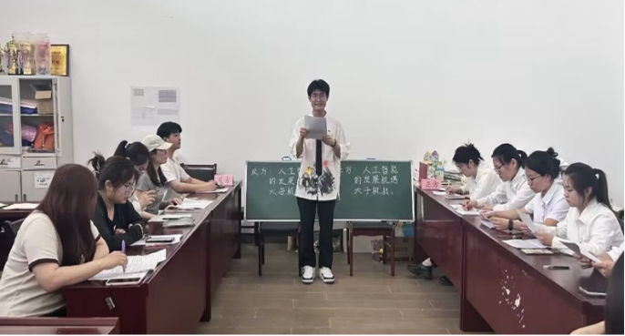 汉语言文学专业学生第一党支部代表的正方观点为“人工智能的发展机遇大于挑战”,汉语言文学专业学生第二党支部代表的反方观点为“人工智能的发展挑战大于机遇”。双方各派五名辩手,由顾代飞同志主持,支部书记张颖颖、支部书记李应华担任评委。