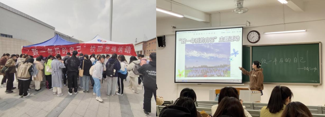 为了更好地引导学生珍惜当下、规划未来,taptap点点体育2023年3月15日—17日在体育馆前广场成功举办“致一年后的自己”校园书信撰写活动。活动由2022级辅导员陈慧慧老师指导,2022级学前教育(专升本)9-14班同学在校园宣传、组织。