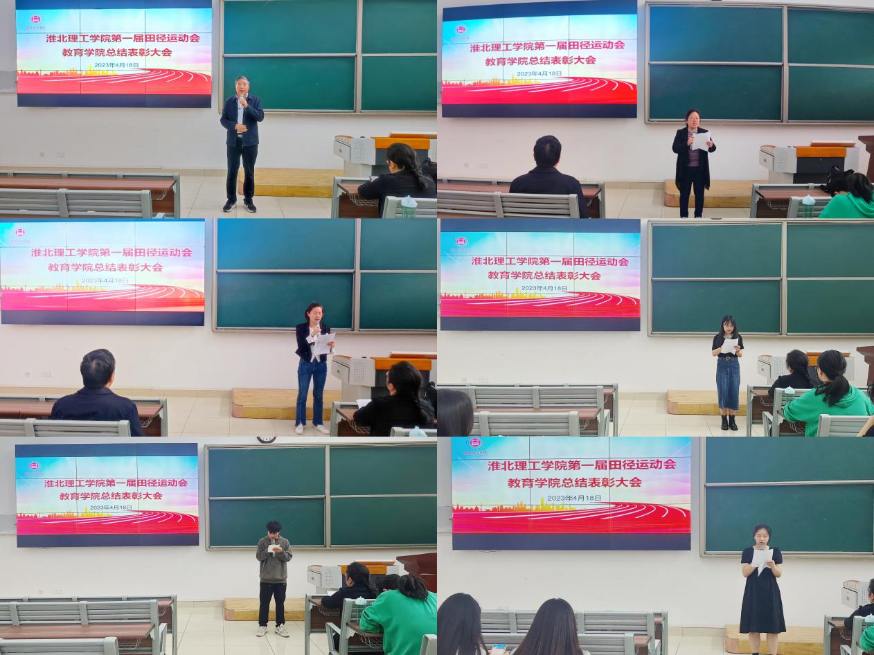 2023年4月18日下午,taptap点点体育在1号教学楼121教室召开学校第一届田径运动会总结表彰大会。学院党总支书记(院长)王家云、分管副书记孟向红、团总支书记黄莹莹、全体辅导员、运动员及22级普本班级班长、团支书参加了会议,会议由团总支书记黄莹莹主持。