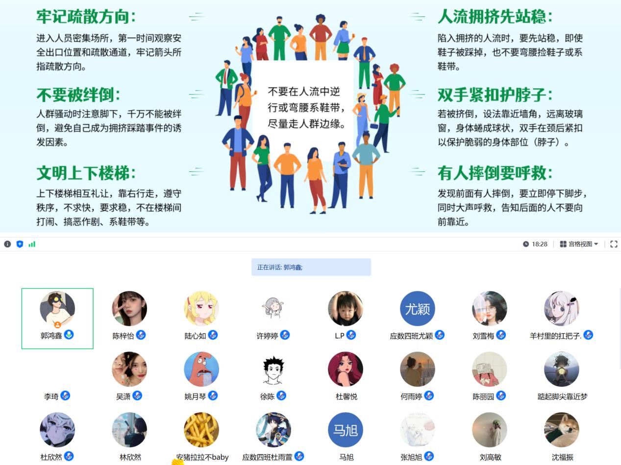 通过此次班会,一定程度上提升了学院学生安全意识,增强了广大师生自我防范、自我保护和处理突发事故的能力,为平安校园、文明校园的建设贡献力量。