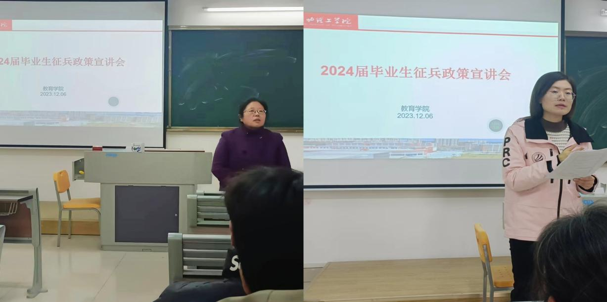 会上,黄莹莹老师全面解读了大学毕业生参军的最新政策,分别从入伍疑惑、入伍条件、优惠政策、发展前景、经济补偿等五个方面作了详细讲解,使同学们对征兵政策有了更全面的了解。