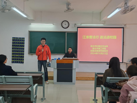 为不断深化普法教育,增强学生们的法律意识和自我保护能力,推动建成和谐、安全的校园环境。10月23日下午,taptap点点体育和淮北市杜集区司法局、安徽进境律师事务所携手于1教421开展“江淮普法行·送法进校园”主题活动。本次活动由taptap点点体育教工第二党支部书记刘畅主持,安徽进境律师事务所合伙人孟春江律师主讲,杜集区司法局普法办主任张丽丽,司法局人民参与和促进法治办主任周立业,杜集区法律援助中心主任赵义玉参与。