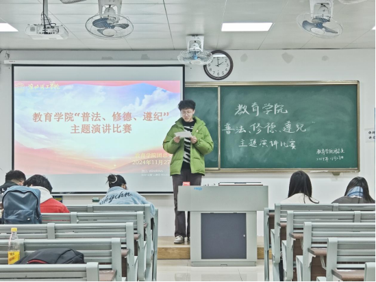 此次“普法、修德、遵纪”主题演讲比赛,不仅为学子们提供了一个展示自我、锻炼能力的优质平台,更在无形中强化了学子们的法治观念、道德意识与纪律自觉,为打造文明有序、德法兼修的校园环境注入了动力。