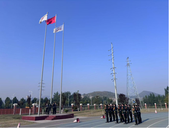 升旗仪式正式开始,国旗护卫队英姿飒爽护送国旗入场,鲜艳的五星红旗在朝阳中缓缓升起;全体师生庄严肃立,高唱国歌,目光如炽,向国旗致以深切敬意。