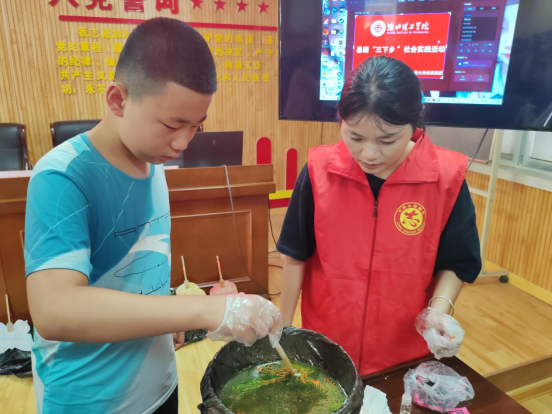7月5日,在金园社区服务中心,实践队开展了主题为“淮战传奇,童韵传薪” 的实践活动。队员们为学生们讲解淮海战役历史,进行互动问答,唱红色歌曲,并组织漆扇制作体验,培养了学生们对红色文化和非遗的兴趣。实践队还贴心地为学生们准备了彩笔、读书笔记本子、捏捏泥土等小礼物,鼓励他们在学习和生活中保持积极向上的态度。