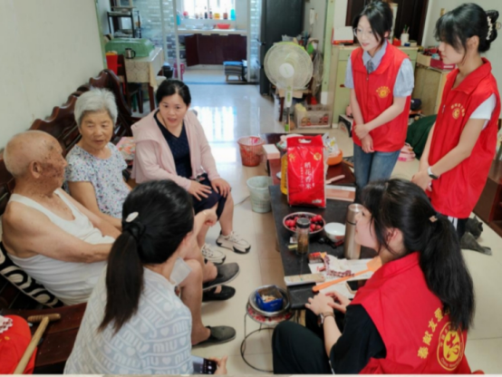 7月1日上午,实践队满怀敬意地走访了港利社区的老党员,与他们亲切交谈,详细了解每一位的生活和身体状况并送上米、油、笔记本等慰问品。在党龄超五十载的张正芬家中,她讲述了基层工作中为民服务的故事,“入党就是要为人民服务,再苦再累都值得”,令队员们深受触动。下午,实践队前往慰问老兵。张建同志精神矍铄,向队员们讲述着战场上的生死瞬间和保家卫国的坚定信念,队员们真切感受到了老兵的英勇无畏和为国家奉献一切的高尚情怀,深受感动与鼓舞。
