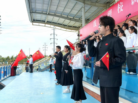 随后,各参赛班级依照抽签顺序依次登场。本次参赛班级精选了15首富有时代气息与爱国情怀的经典曲目,表现形式多样、创意频出,《游击队歌》融入深情朗诵,《歌唱祖国》搭配精心舞蹈,《我的中国心》挥舞鲜艳国旗,以真挚的情感和丰富的舞台语言,呈现出一幅幅感人至深的青春画卷,生动诠释了“践淮理校训,颂祖国华章”的深刻内涵。