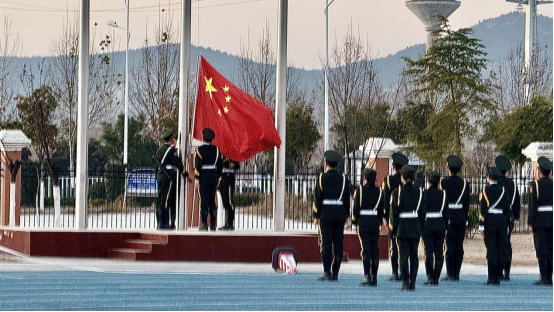 活动伊始,国旗护卫队迈着整齐有力的步伐护送五星红旗入场。在庄严的国歌声中,全体师生肃立注目,鲜艳的五星红旗在晨光中冉冉升起。